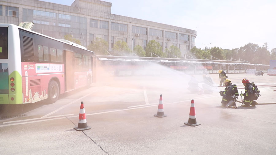 本次演練得到了望城區(qū)交通運輸局、望城區(qū)交警大隊、高塘嶺派出所、書堂山消防救援站、中國人保長沙市公司、華安保險湖南分公司等單位的專業(yè)指導(dǎo),覆蓋反恐防暴、消防滅火、新能源充電樁火災(zāi)處置等六大科目,全面模擬了公交運營及充電站運營過程中可能遇到的各種突發(fā)緊急情況,以實戰(zhàn)化演練切實提升應(yīng)急處置能力。